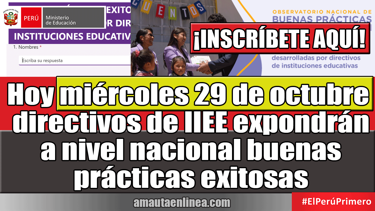 Minedu: Hoy miércoles 29 de octubre directivos de IIEE expondrán a nivel nacional buenas prácticas exitosas ¡INSCRÍBETE AQUÍ!
