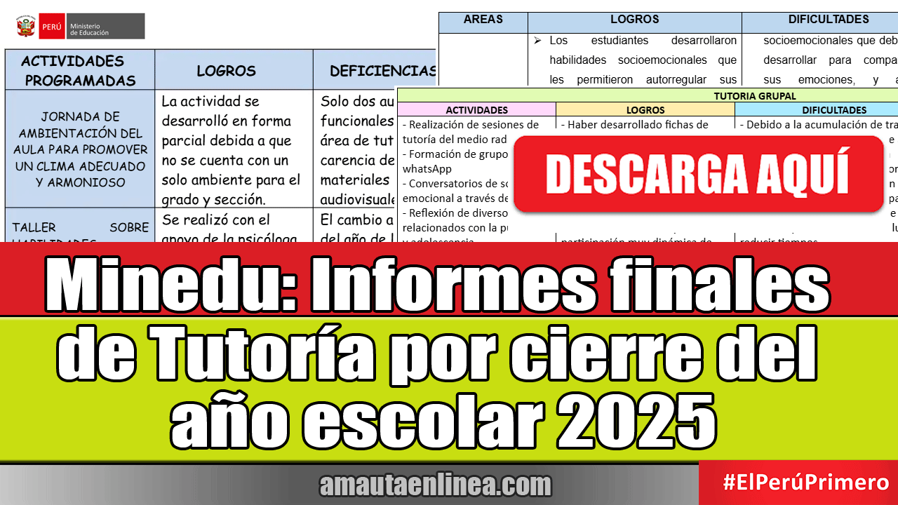 Minedu: Informes finales de Tutoría por cierre del año escolar 2025 ¡Atención Docente!