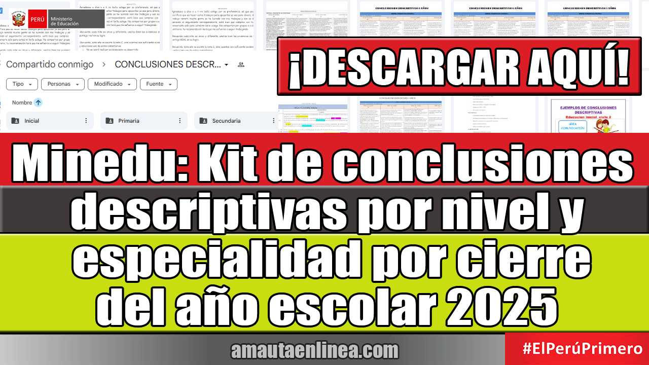 Minedu: Kit de conclusiones descriptivas por nivel y especialidad por cierre del año escolar 2025 ¡DESCARGAR AQUÍ!
