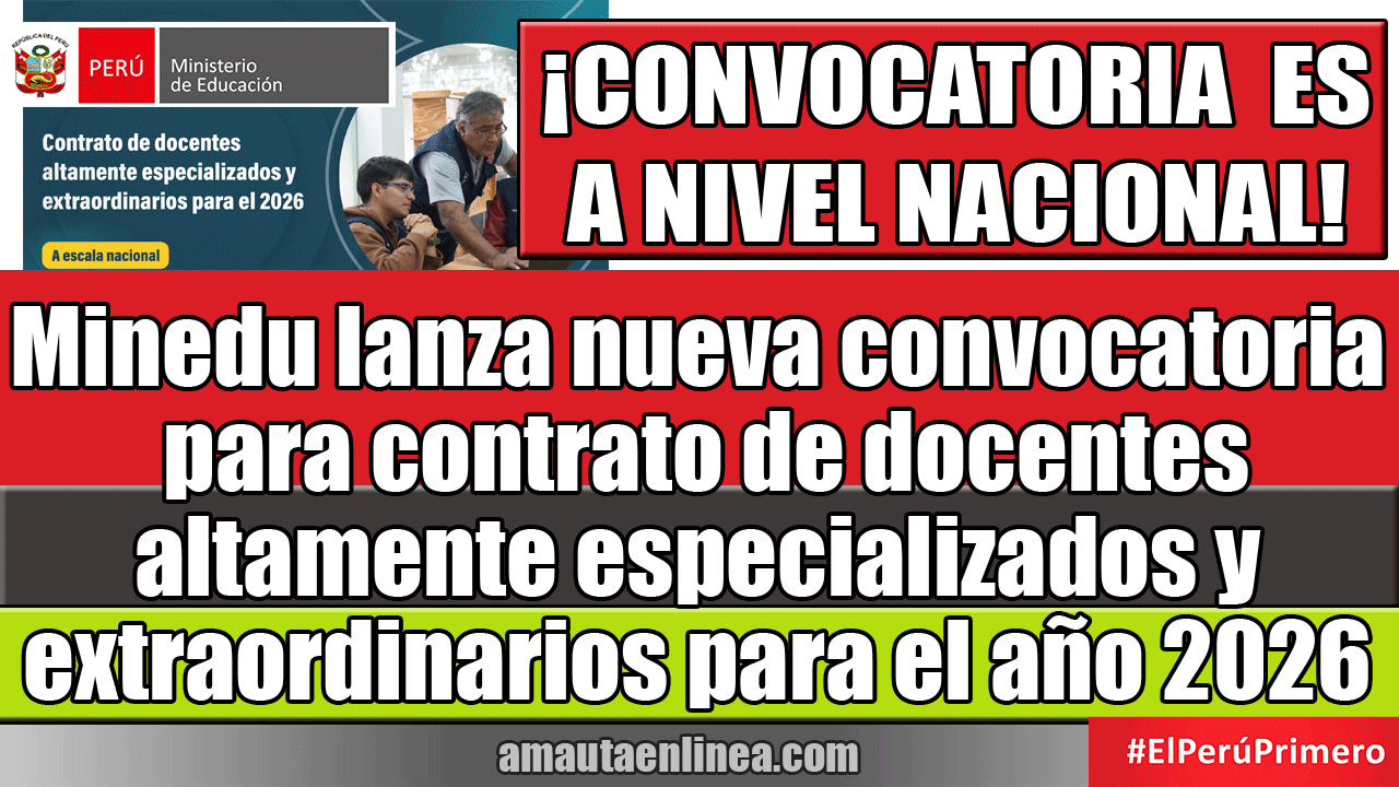 Participa en la convocatoria de docentes Altamente especializados y extraordinarios que el Ministerio de Educación y las direcciones regionales de Educación se encuentran implementando, según la Resolución Viceministerial N.° 226-2020-MINEDU y su modificatoria RVM N.° 134-2023-MINEDU.