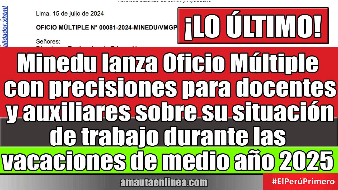 Minedu lanza Oficio Múltiple con precisiones para docentes y auxiliares sobre su situación de trabajo durante las vacaciones de medio año ¡LO ÚLTIMO!