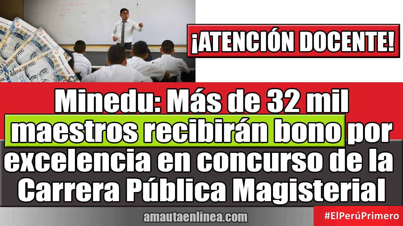 En una apuesta por reconocer el mérito docente y fortalecer la Carrera Pública Magisterial, el Ministerio de Educación (Minedu) anunció que más de 32,000 maestros recibirán un bono excepcional de 18,000 soles por haber logrado los más altos puntajes en los concursos de nombramiento 2022 y 2024.