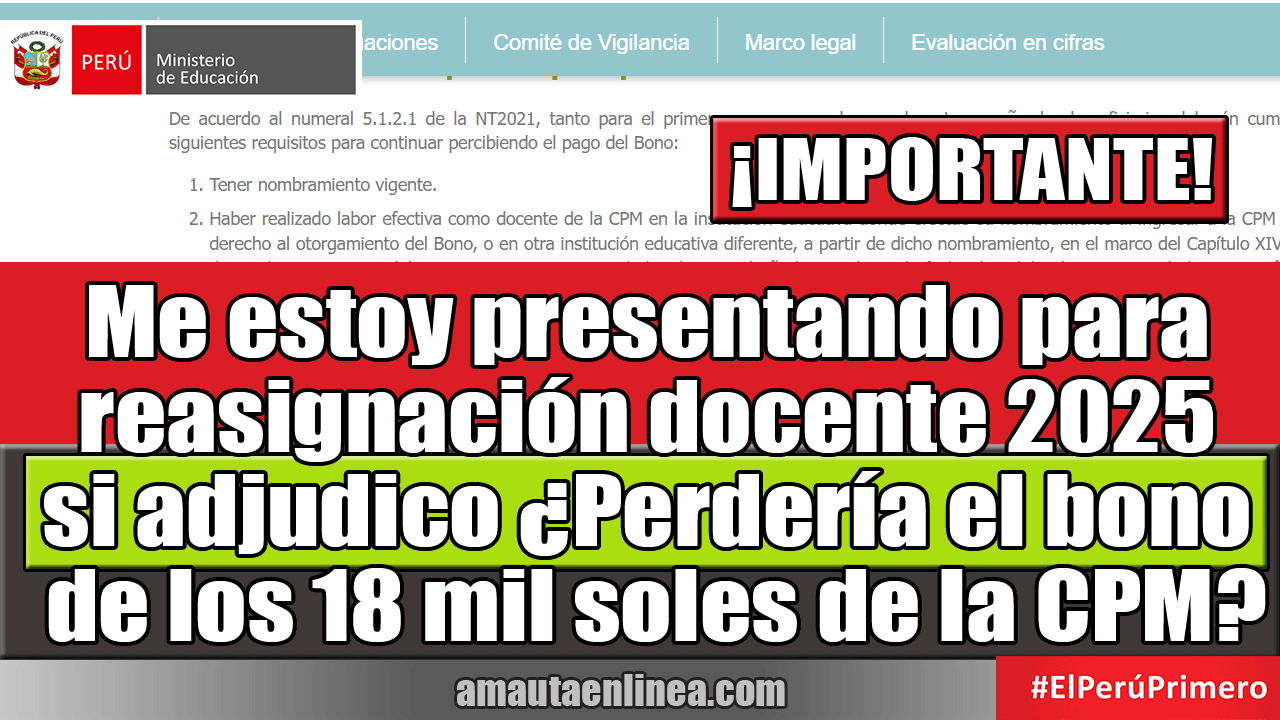 Minedu: Me estoy presentando para reasignación docente 2025 si adjudico ¿Perdería el bono de los 18 mil soles?