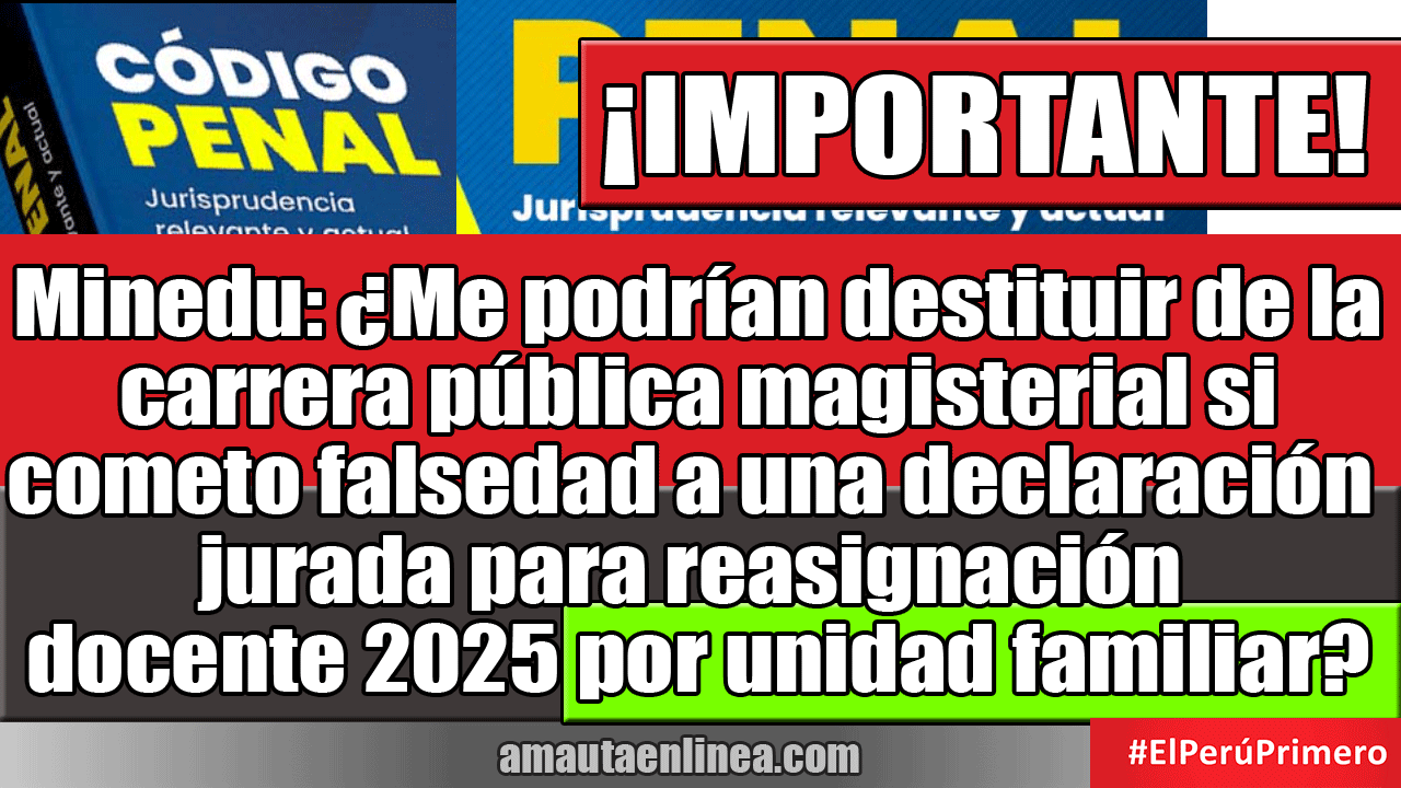 Minedu ¿Me podrían destituir de la carrera pública magisterial si cometo falsedad a una declaración jurada para reasignación docente 2025 por unidad familiar?