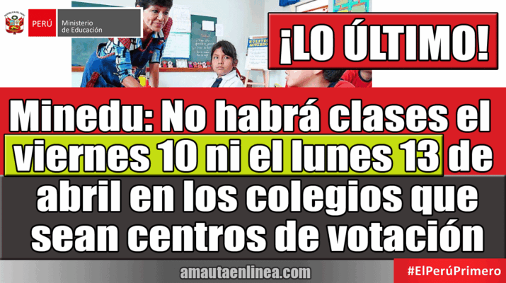 Esto se debe a que, de acuerdo al plan de coordinación interinstitucional del Minedu y la Oficina Nacional de Procesos Electorales (Onpe), estos colegios deberán estar disponibles desde el viernes 10 hasta el lunes 13 de abril para permitir la instalación, desarrollo y cierre del proceso electoral.