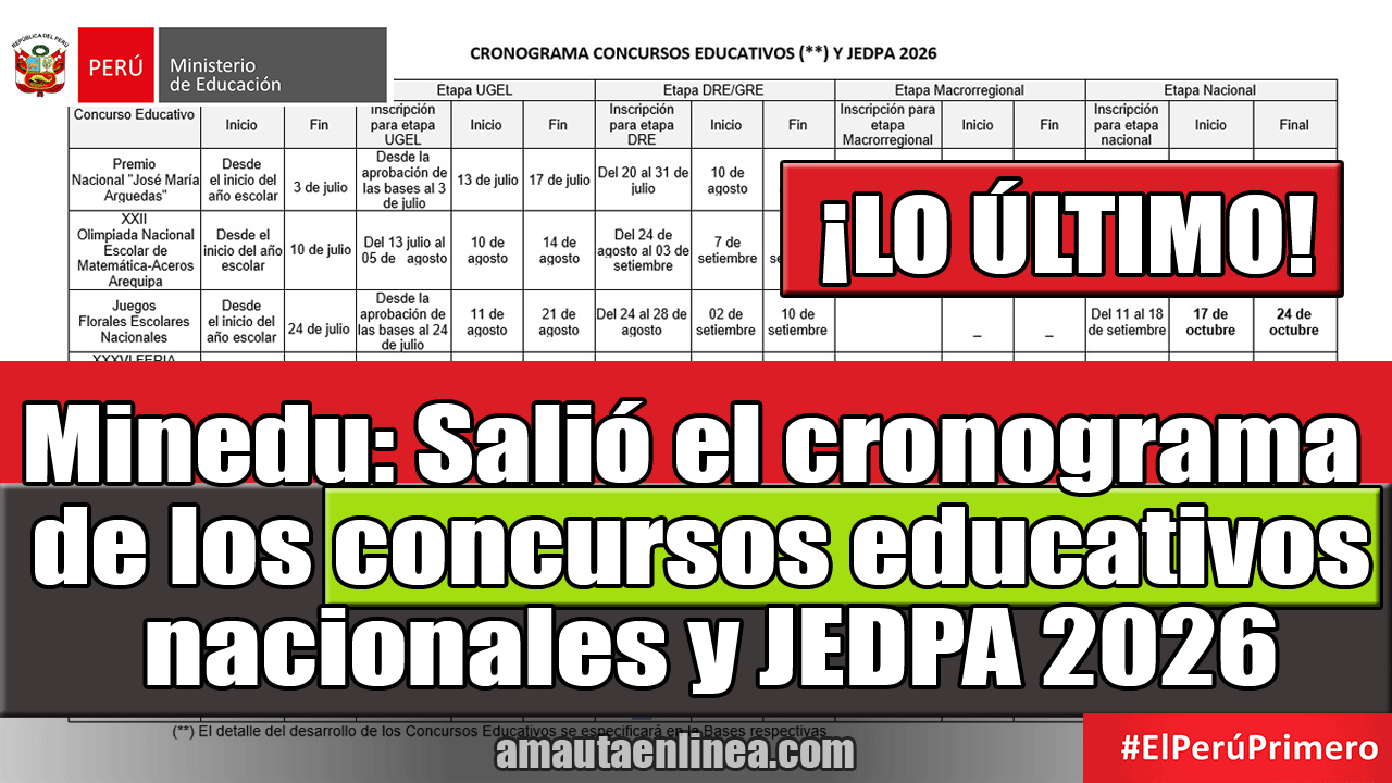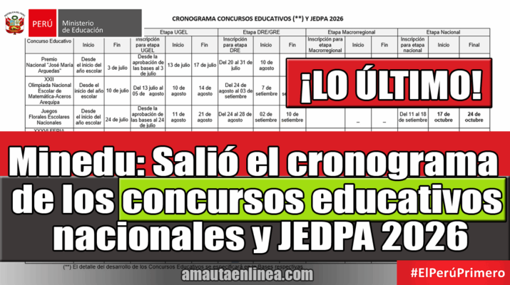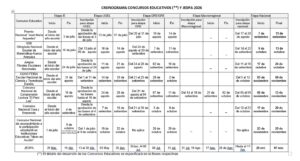 CRONOGRAMA CONCURSOS EDUCATIVOS NACIONALES 2026