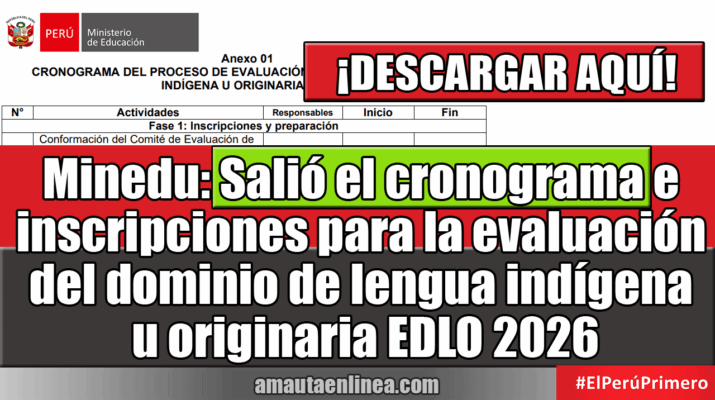 Asunto : Convocatoria para el proceso de inscripción a la Evaluación del Dominio de la Lengua Indígena u Originaria de Docentes (EDLO 2026).