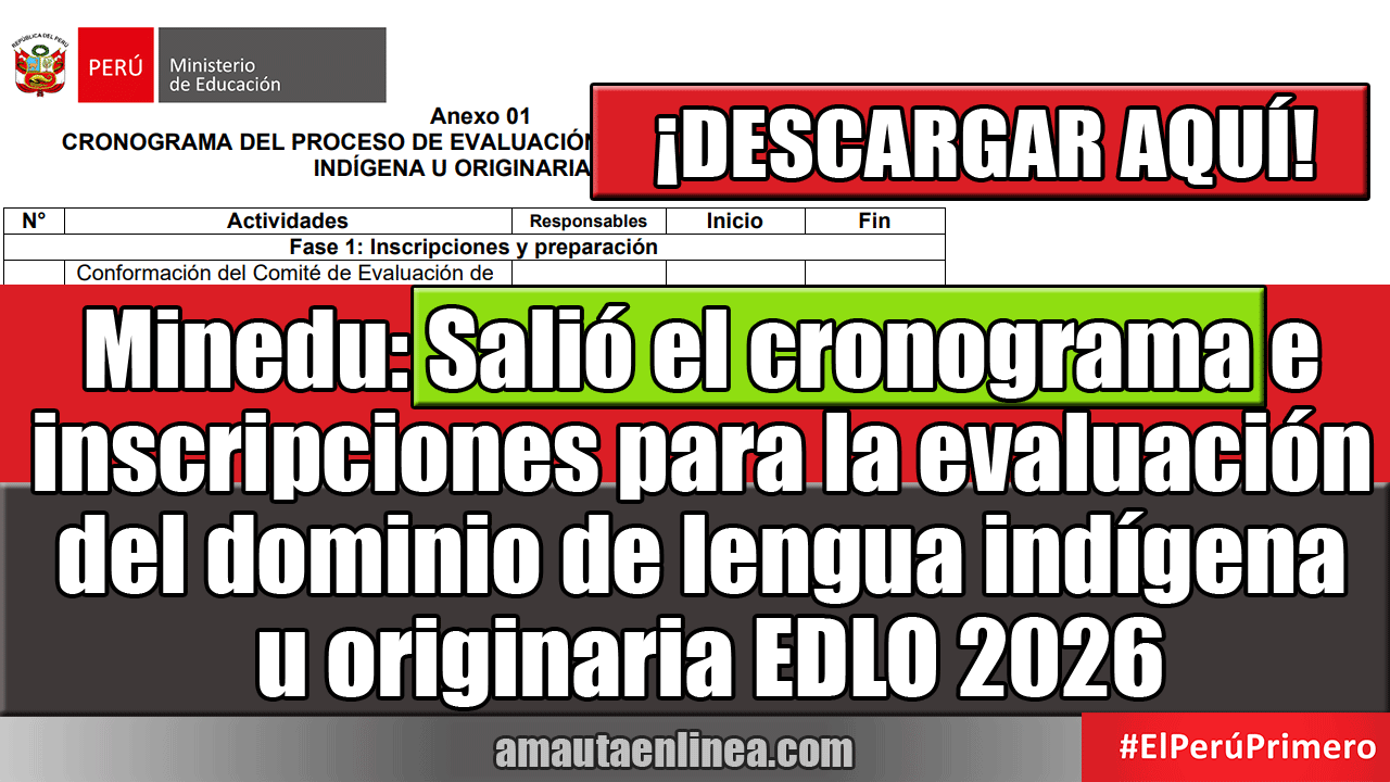 Asunto : Convocatoria para el proceso de inscripción a la Evaluación del Dominio de la Lengua Indígena u Originaria de Docentes (EDLO 2026).