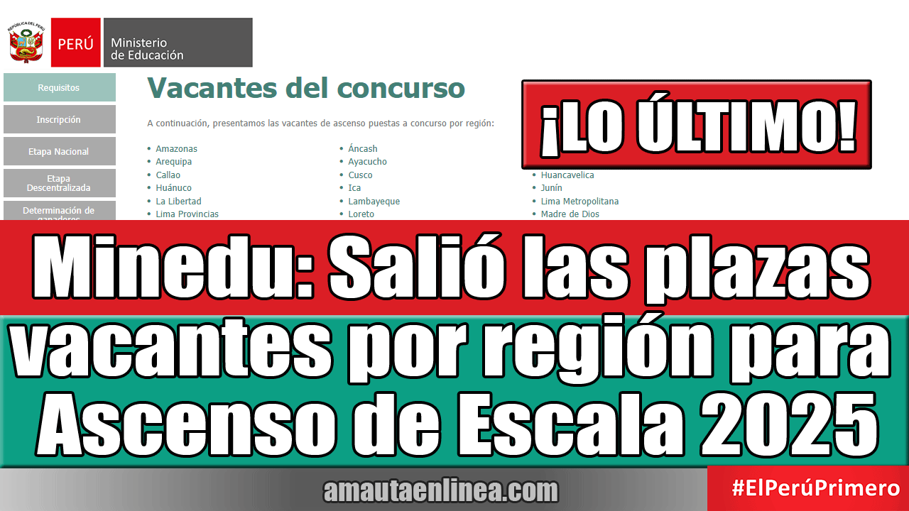 Minedu: Salió las plazas vacantes por región para Ascenso de Escala 2025 ¡LO ÚLTIMO!