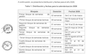 A continuación compartimos la calendarización para el año escolar 2026