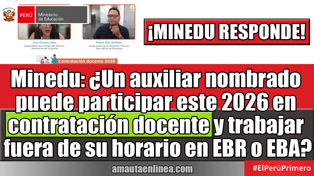 Por ejemplo, el caso del auxiliar de educación nombrado que busca asumir clases (incluso en Educación Básica Alternativa – EBA) fuera de su jornada habitual.