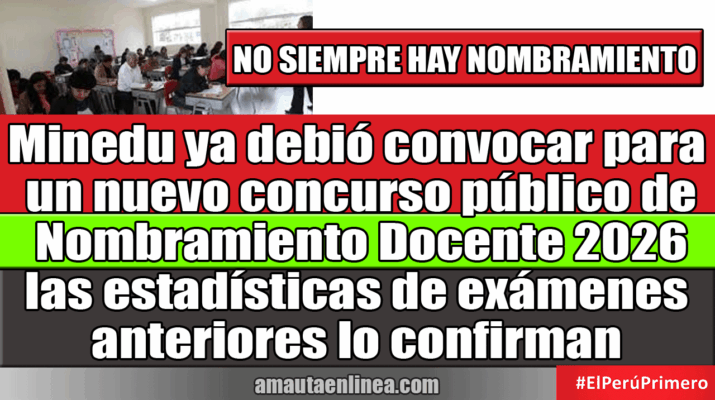 Minedu ya debió convocar para concurso de nombramiento docente 2026 las estadísticas de exámenes anteriores lo confirman