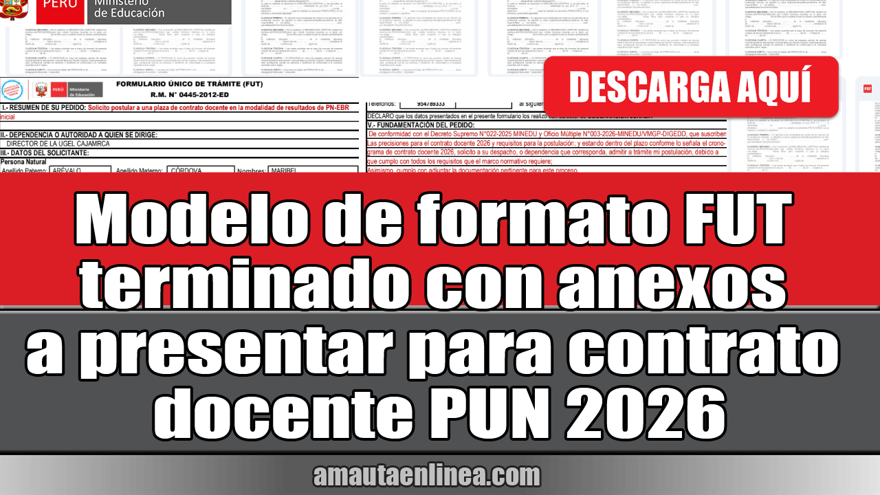 Estimados docentes queremos compartir a continuación el modelo de formato FUT terminado con anexos a presentar para contrato docente PUN 2026