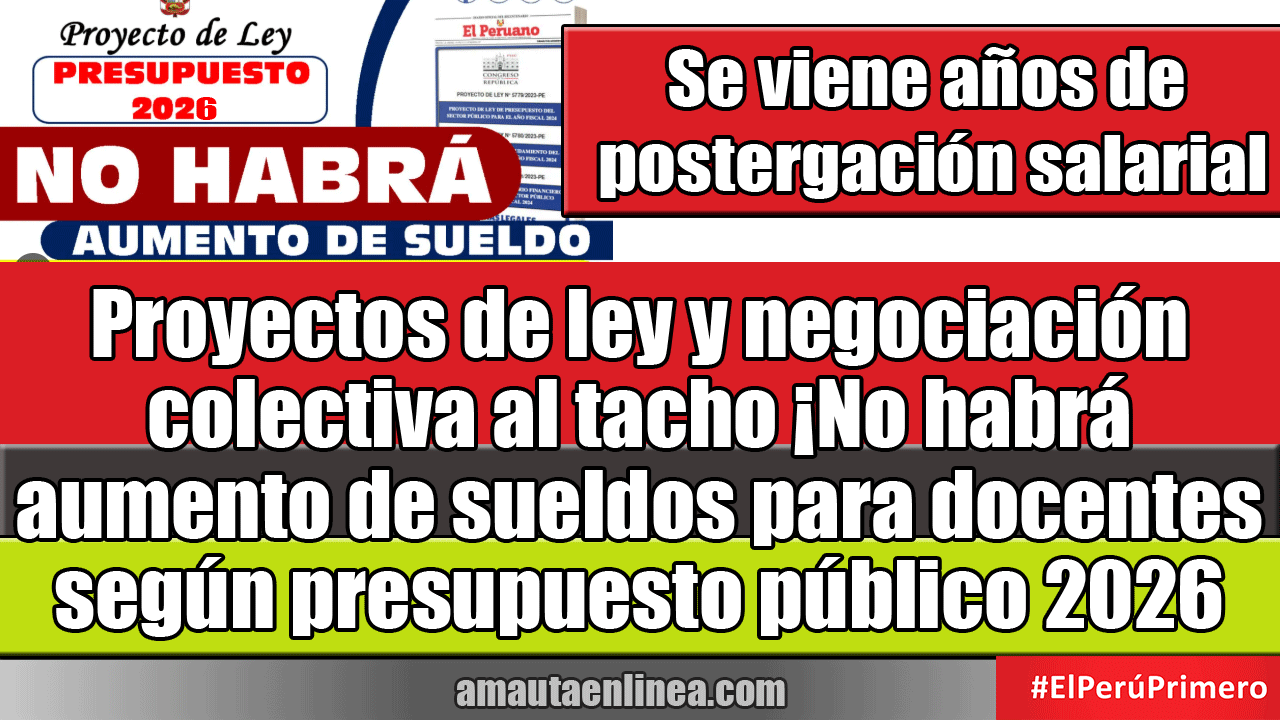Tras la revisión de la autógrafa de la Ley de Presupuesto 2026, que ha sido remitida por el Congreso al Presidente de la República, se ha podido confirmar que en materia del sector Educación no se han considerado para el año 2026, los incrementos remunerativos reclamados a favor de los docentes de la carrera pública magisterial y auxiliares de educación.