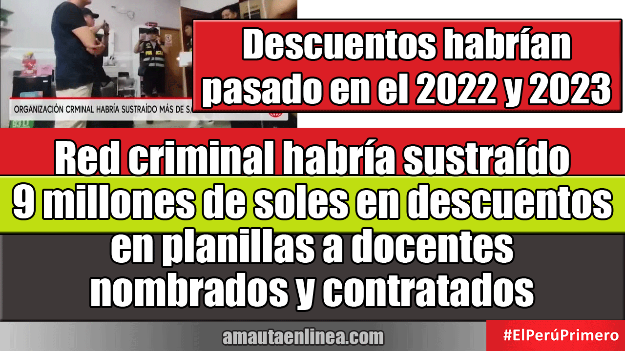 Según las investigaciones, el grupo habría sustraído aproximadamente S/ 9 millones mediante descuentos irregulares aplicados a los sueldos de cientos de docentes de la Unidad de Gestión Educativa Local (UGEL) de Contamana, en Loreto, entre los años 2022 y 2023.