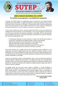 ¡SUTEP anuncia Huelga Nacional Indefinida para el 2026!